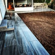 Wir bauen auf Wunsch Terrassen mit Keramikfließen oder Betonplatten.